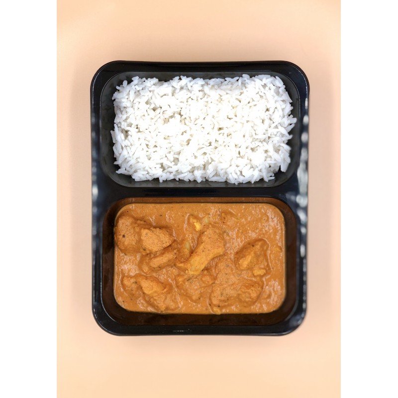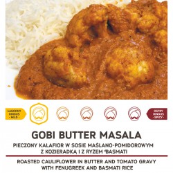 Pieczony kalafior w łagodnym, maślano pomidorowym sosie z ryżem basmati. Porcja 600g.